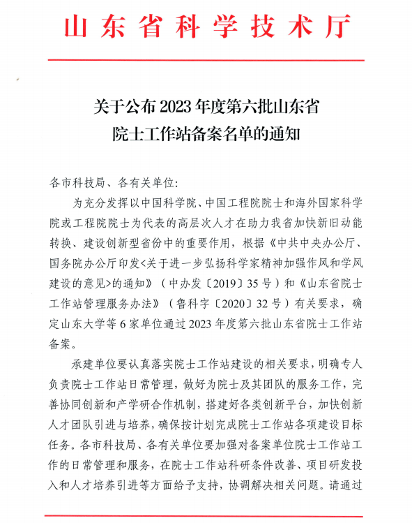 山東省院士工作站是以企業(yè)創(chuàng)新需求為導向,由院士及其領銜的科研團隊與承建單位共同組建的高層次科技創(chuàng)新平臺,是推動產(chǎn)業(yè)提升和轉(zhuǎn)型升級的有效載體。